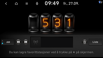 Trykk på DAB/FM eller FM for å endre bandet til AM, hvis radiobandet er innstillet til DAB (hvis utstyrt)/FM. Stasjonen du sist lyttet til, vises.