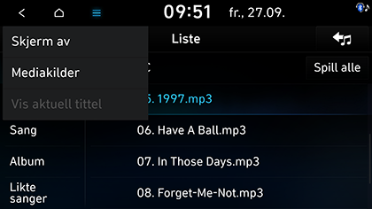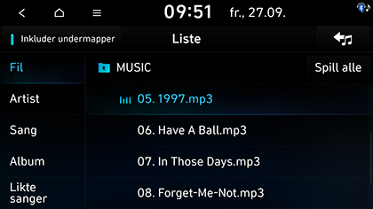 Skjermen flyttes til fillisten som spilles for øyeblikket.