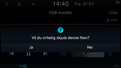 I tilfelle den ønskede filen vises, trykker du på [J]-knappen for å spille av filen.
