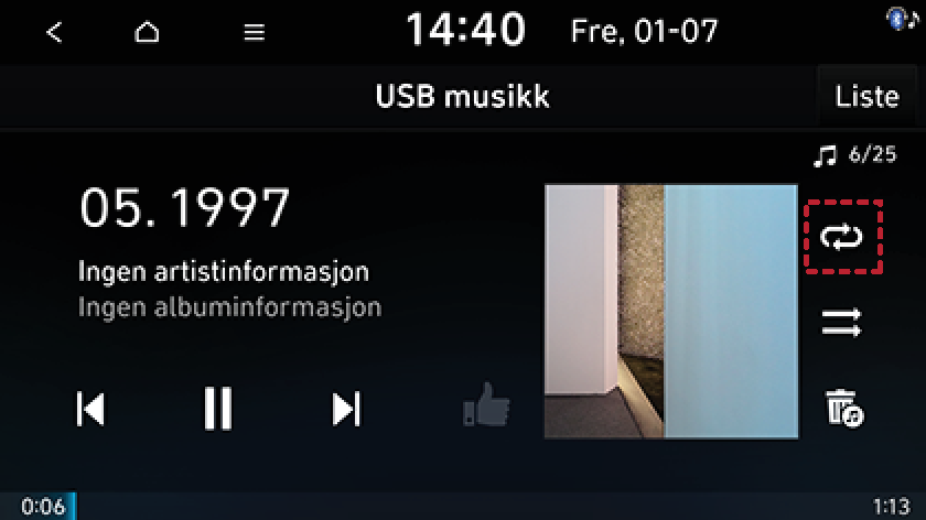 Når ønsket del på fremdriftslinjen dras eller trykkes, spilles musikken hos den valgte delen.