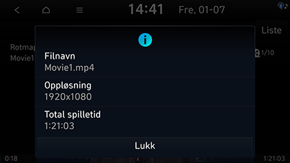 Denne funksjonen viser informasjon om navn, oppløsning og avspillingstid for filen.
