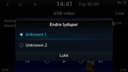 ] > Mediakilder > USB-video eller bytt via MODE-knappen på rattet. -