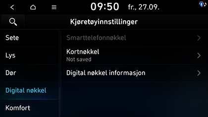 Trykk på SETUP > Kjøretøy > Digital nøkkel.