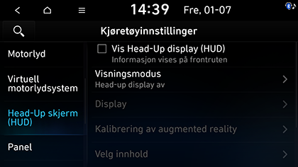 Trykk på SETUP > Kjøretøy > Head-Up skjerm (HUD).