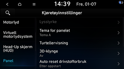 Lysstyrke: Stiller inn lysstyrken for instrumentpanelet.