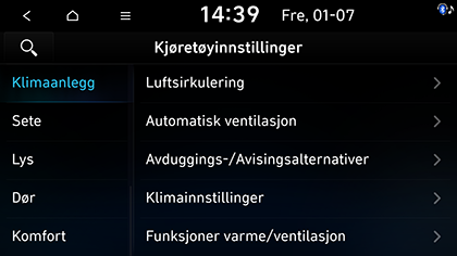 Trykk på SETUP > Kjøretøy > Klimaanlegg.