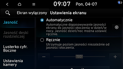 • Automatyczna regulacja jasności (jeśli na wyposażeniu): automatycznie dostosowuje jasność ekranu do jasności na zewnątrz.