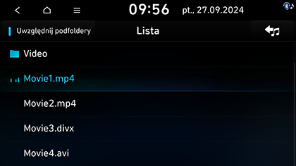 Możliwe jest odtworzenie żądanego pliku poprzez wyszukanie go na liście na urządzeniu USB.