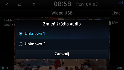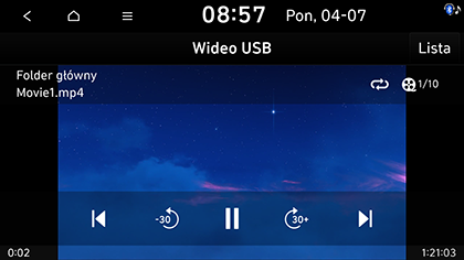 Umożliwia odtwarzanie plików wideo zapisanych w urządzeniu USB.