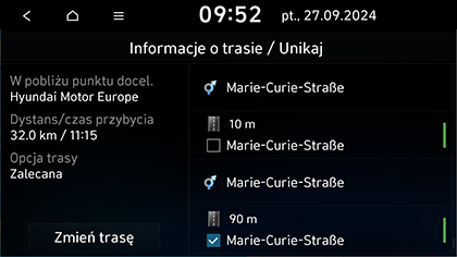 Inform. o trasie/opcje omijania: Wyświetla informacje o trasie i ulicy, których możesz unikać.