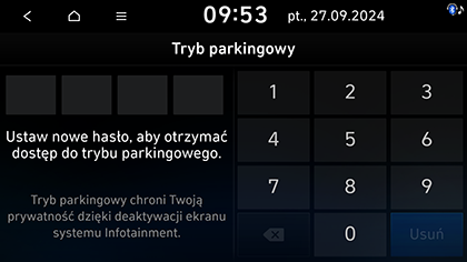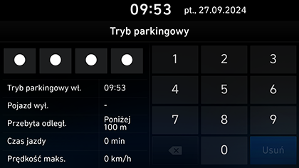 Aby wyłączyć tryb odprowadzania na parking, wprowadź czterocyfrowe hasło używane do ustawienia trybu odprowadzania na parking lub użyj aplikacji w smartfonie.