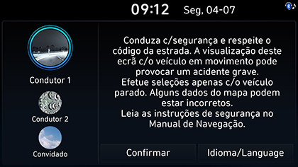 Prima Confirmar após selecionar Condutor 1, Condutor 2 ou Convidado. Para mais detalhes, consulte a parte sobre "Perfil".