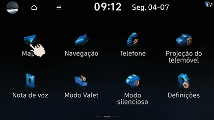 Prima o menu pretendido no ecrã para selecionar um menu.