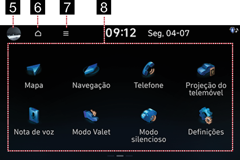 Projeção do telemóvel (se equipado): executa a função Android Auto ou Apple CarPlay (se equipado).