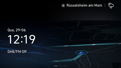 Apresenta a meteorologia e temperatura atuais. Acede ao ecrã de informações meteorológicas.