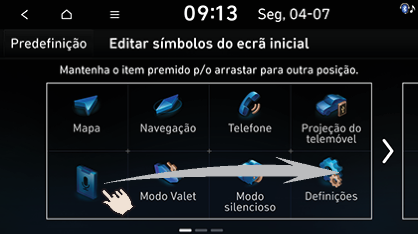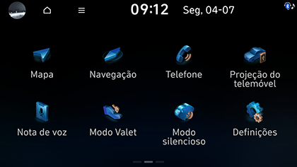 Modo Valet (se equipado): acede ao menu Modo Valet.