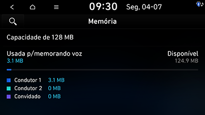 Pode verificar um espaço de memória para um memorando de voz (espaço total de armazenamento, espaço de memória utilizado, espaço de memória restante).