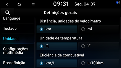 Este menu é utilizado para configurar as unidades utilizadas no sistema.