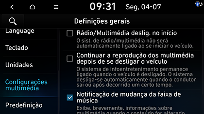 Rádio/Multimédia deslig. no início: o rádio/multimédia desliga-se quando o veículo é desligado e não se liga de novo ao ligar o veículo.