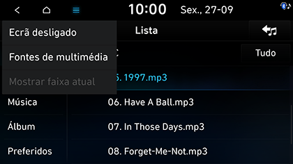 • Prima [] > Música deste artista ou Título deste álbum para mover o ecrã do menu de listas.