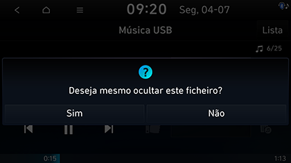 Pode ocultar o ficheiro em reprodução atualmente em USB.