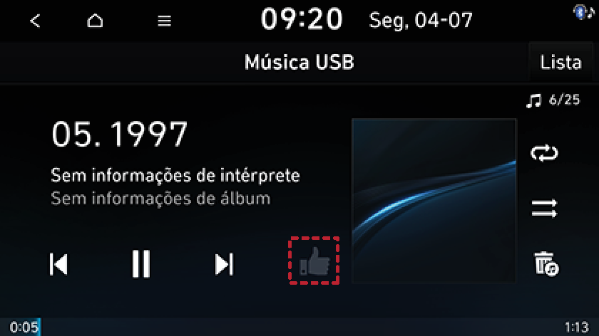 • Para reproduzir Música por USB enquanto está a ser reproduzida uma fonte diferente, prima [] > Fontes de multimédia > Música USB ou alterne utilizando o botão MODE no volante.