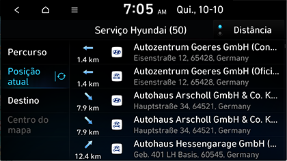 Destino: pesquisa serviços Hyundai perto do destino atual. Apenas disponível quando o destino está definido.