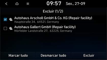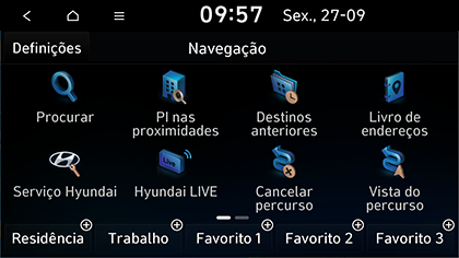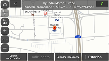 Pode configurar as instalações da assistência Hyundai como destino. Alguns itens nas imagens poderão diferir do ecrã real, de acordo com o modelo, opção e país.