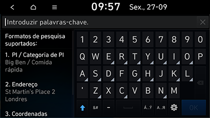 Introduza as palavras-chave, como um POI, categoria de POI, endereço ou coordenadas e prima OK.
