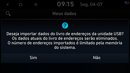 Esta função é utilizada para importar o livro de endereços de um dispositivo de memória USB.