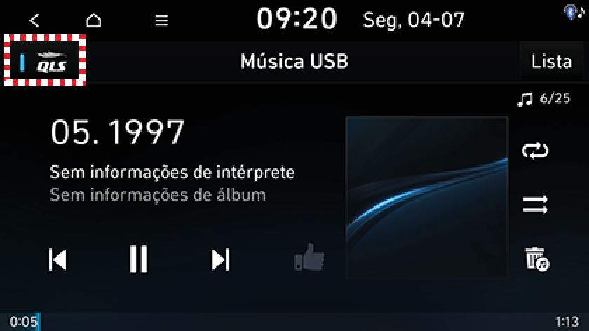 Prima o botão de efeito de som no ecrã multimédia/de transmissão para ajustar.