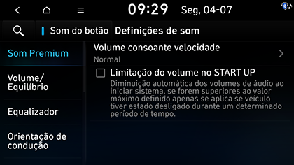 • Volume consoante velocidade: ajusta automaticamente o volume de áudio de acordo com a velocidade do veículo.