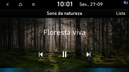 ] > Fontes de multimédia > Sons da natureza ou alterne utilizando o botão MODE no volante. -
