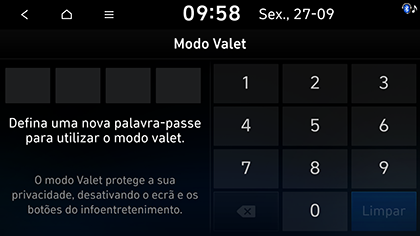 Se pretender desativar o modo de valet, insira a palavra passe de quatro dígitos usada para definir o modo de valet ou use a aplicação para smartphone.