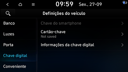 Pressione SETUP > Veículo > Chave digital.