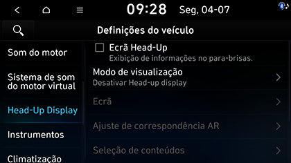 Seleção de conteúdos: pode definir o conteúdo do head-up display.