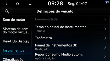 Luminosidade: define a luminosidade para o painel de instrumentos.