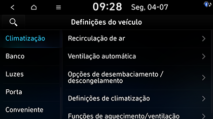 Pressione SETUP > Veículo > Climatização.