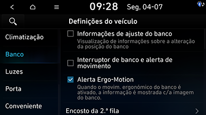 Pressione SETUP > Veículo > Banco.