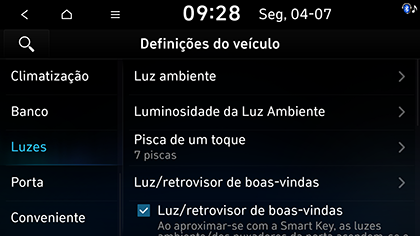 Pressione SETUP > Veículo > Luzes.