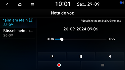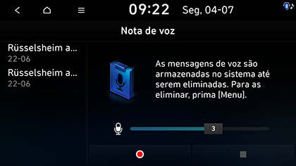Para reproduzir o memorando de voz pretendido, selecione-o na lista de memorandos de voz.