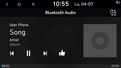 Apăsați MEDIA de pe unitatea principală. Va fi afișat ecranul audio Bluetooth.