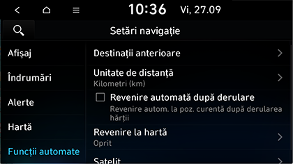 Revenire automată după derulare: Setează vehiculul să revină automat în centrul hărții.