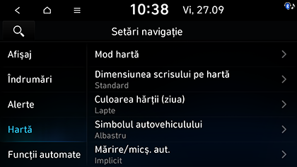Acest meniu este utilizat pentru modificarea setărilor hărții.