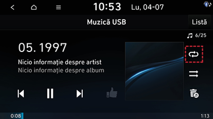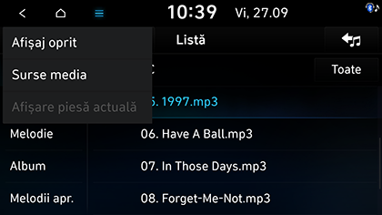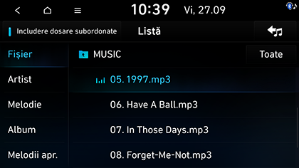 ]: Redă secvențial fișierele din Artist, Melodie, Album sau Melodii apr..