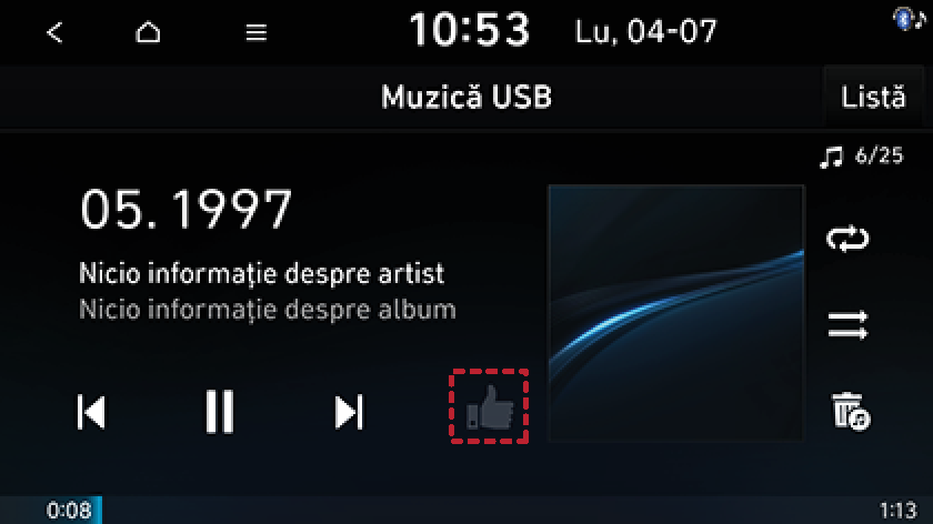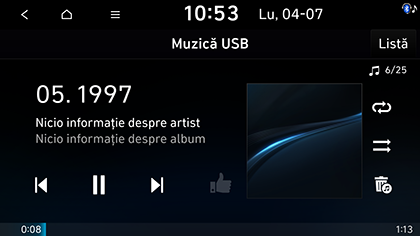 ] > Surse media > Muzică USB sau comutați prin butonul MODE de pe volan. -