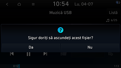 Puteți ascunde fișierul redat în acest moment pe USB.