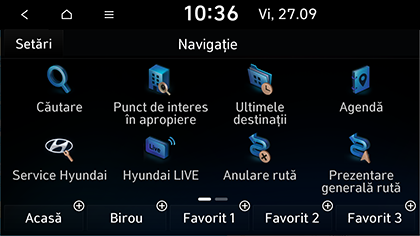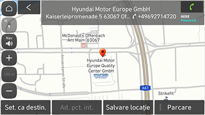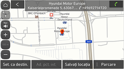Puteți seta unitățile de service Hyundai ca destinație. Unele elemente din imagini pot fi diferite de ecranul real, în funcție de model, opțiuni și țară.