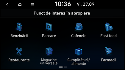 Aproape de destinație: Caută POI-uri din apropierea destinației curente. Disponibil doar dacă destinația este setată.