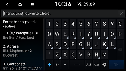 Puteți seta un POI ca destinație folosind diferite metode de căutare. Unele elemente din imagini pot fi diferite de ecranul real, în funcție de model, opțiuni și țară.